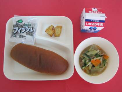 豚肉、いか、キャベツ、たまねぎ、にんじん、たけのこ、にらを使った