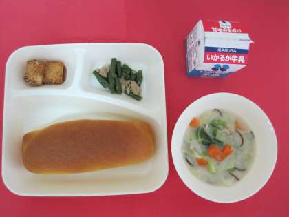 あつあげを焼き、ごまじょうゆをかけたものと豚肉と三度豆を使った