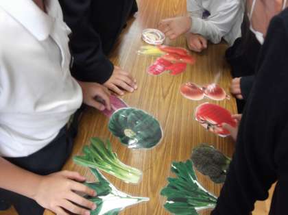 おやつの食べる時間や量のことを学んだり、サッポロポテトの中にどんな野菜が入るのかを考えたりしました。最後に、ポテトチップスを入れる前の包装も見せていただきました。