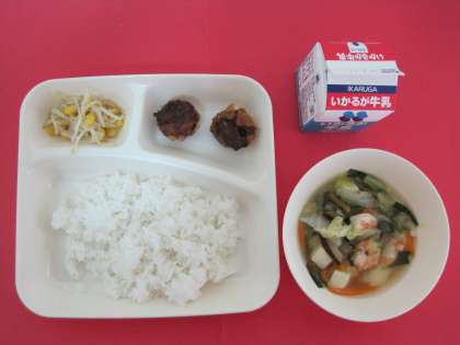使ったスープです。えびにアレルギーのある児童は、えびを入れる