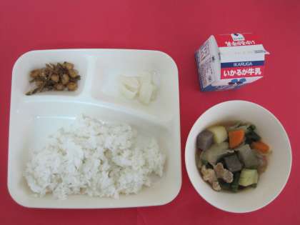 鶏肉、じゃがいも、こんにゃく、たまねぎ、にんじん、三度豆、しめじ