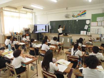 国語の学習です。「ニャーゴ」の場面分けをしています。ユーモアと優しさにあふれた心温まるストーリーです。