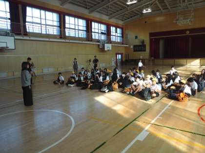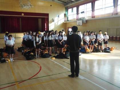 修学旅行の開所式を行いました。待ちに待った楽しい二日間が始まります。みんなで協力し楽しい思い出をたくさん作ってくれればと思います。