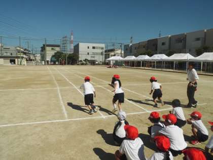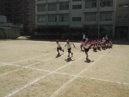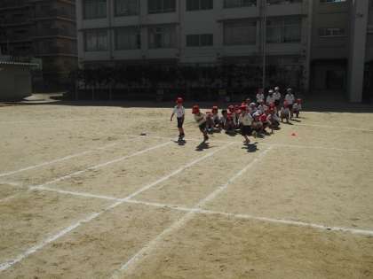 1年生の徒競走の練習です。明日の運動会に向け、ゴール目指して一生懸命に走っていました。