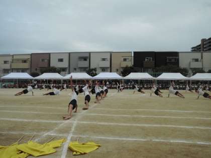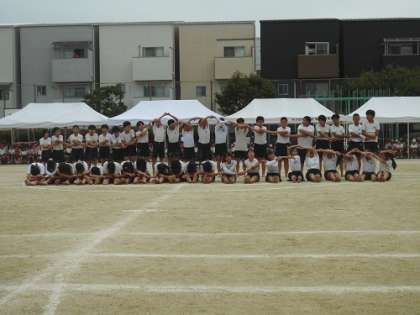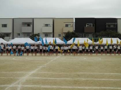 6年生、団体演技「〜挑戦〜心はひとつ」です。