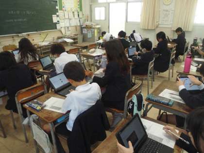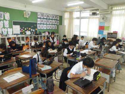 総合的読解力育成カリキュラムの「あったらいいな、こんな祭り」の学習です。タブレットを使い各地の祭りについて調べています。社会科の「受けつがれてきた祭りや行事」で天神祭りの学習をしているこを活かし学習を深めています。