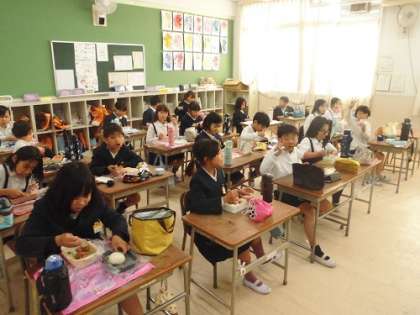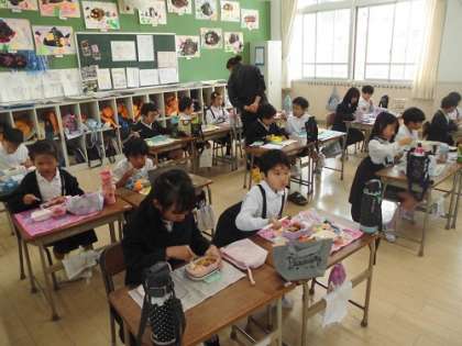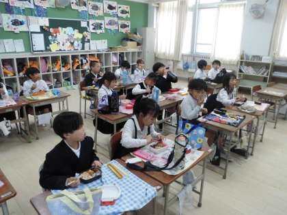 遠足が延期になり、教室でお弁当をいただきました。(1)