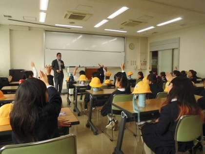 平野区にある唯一の大学、大阪常磐会大学図書館見学に行きました。初めに、大学の紹介をしていただき、こども教育学部の学生の方が校内を案内してくれました。家庭科調理室や保育実践室なども見学しました。授業をのぞかせていただいたり、グランドで鬼ごっこをしたりと楽しい時間を過ごしていました。