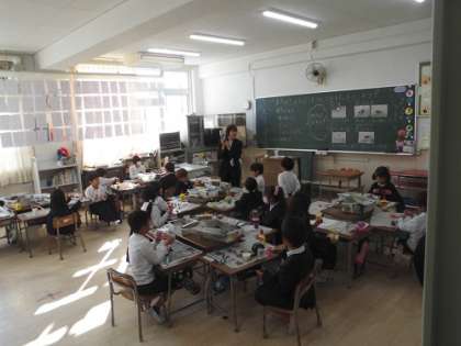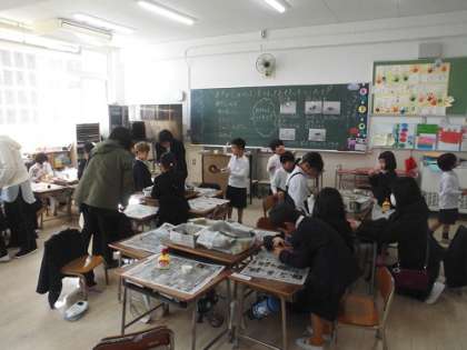 1年生、生活科「あきのおもちゃをつくろう」の学習です。ドングリを使っていろいろなおもちゃをつくりました。お家の方にも手伝っていただいて、上手につくっていました。