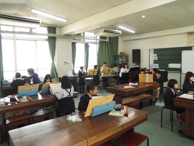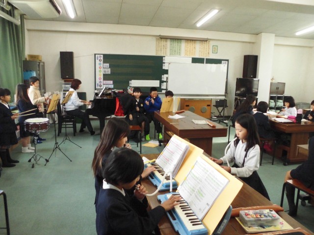 音楽の学習です。「ミッキーマウス・マーチ」の合奏の練習です。