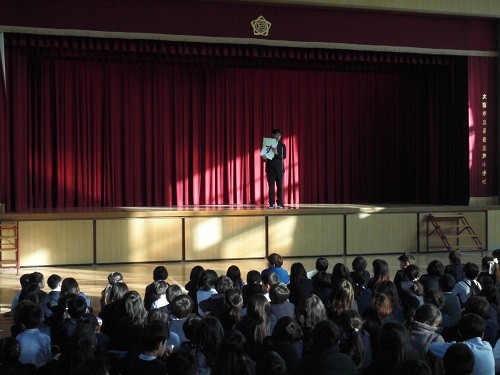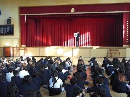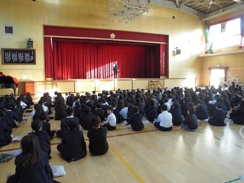 終業式では、校長先生から冬休みのくらしについて、「さ」…寒さに負けず頑張ろう、「し」…しっかり行動しよう、「す」…スマホ、携帯、ゲームの使い方に気つけよう、「せ」…清潔にしよう、「そ」…(困ったことがあれば)相談してくださいと、「さ・し・す・せ・そ」をキーワードにお話がありました。