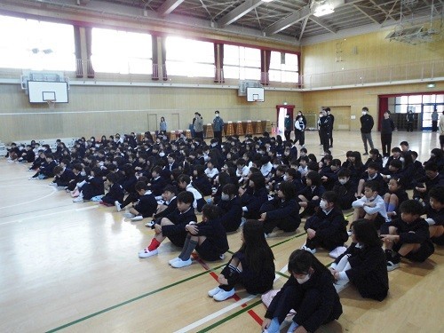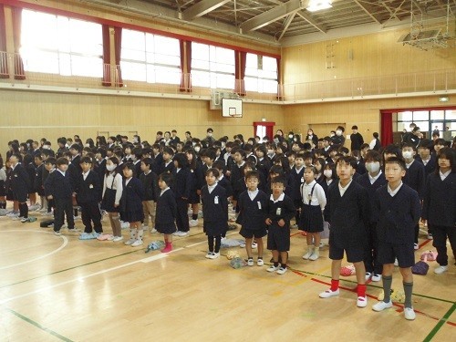 3学期の始業式を行いました。校長先生から冬休みの生活の振り返りや、1年のまとめとしての3月期の学習・生活についてお話がありました。最後は全員で校歌を歌いました。寒さを吹き飛ばす大きな声で歌っていました。