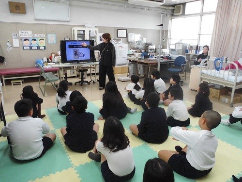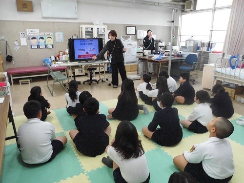 新学期が始まり、発育2測定を行っています。測定前に、養護教諭の先生から保健指導がありました。この冬もインフルエンザが流行っています。インフルエンザにかからないために気をつけることの確認をしました。