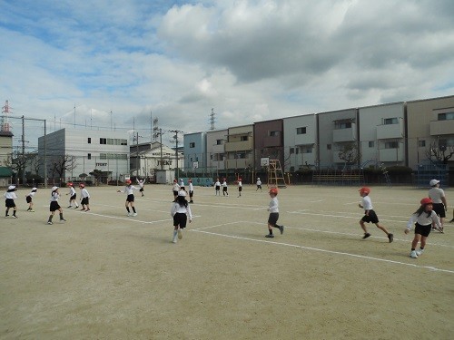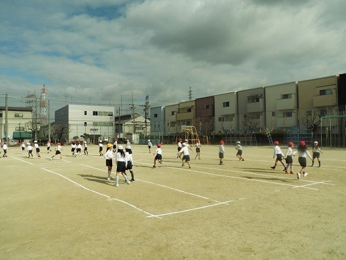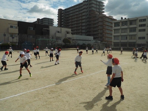 体育の「鬼遊び」の学習です。鬼をかわしたり、つかまえたりと、寒さを吹き飛ばす勢いで走り回っていました。