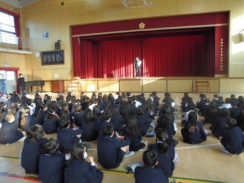 児童朝会を実施しました。今週は本校の給食週間です。校長先生からそのお話がありました。寒さが厳しくなってきています。保健だよりをもとに、インフルエンザの予防についてもお話がありました。健康委員会から「手洗い強調週間」の取り組み結果について発表がありました。一人一人が気をつけ元気な3学期を過ごしてくれればと思います。