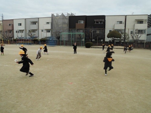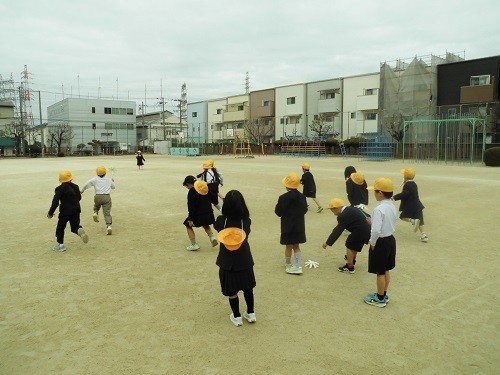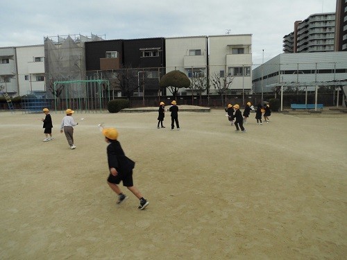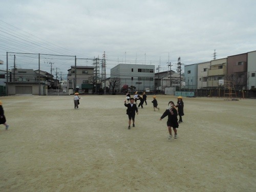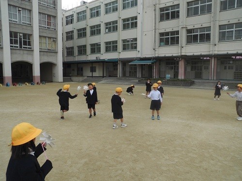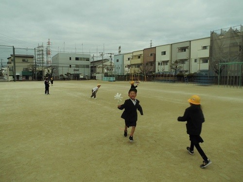 生活科の「きせつとなかよしふゆ」の学習で、冬に遊ぶ「かぜおもちゃ」をつくりました。今日は風車をつくり、運動場で遊びました。走ると勢いよく風車が回り、大喜び。風を受けようと運動場を走り回っていました。