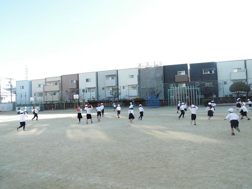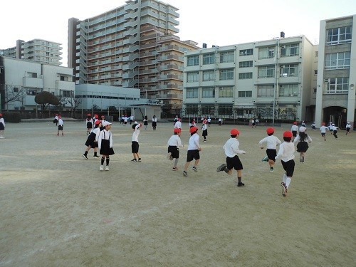 今日は低学年で行いました。寒い中ですが、鬼ごっこで走り回って身体も温まりました。