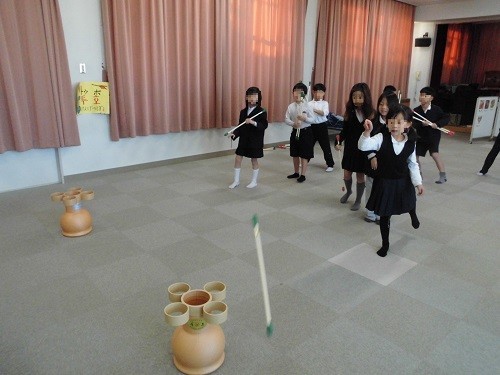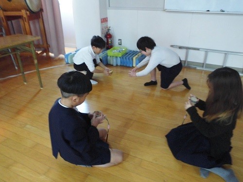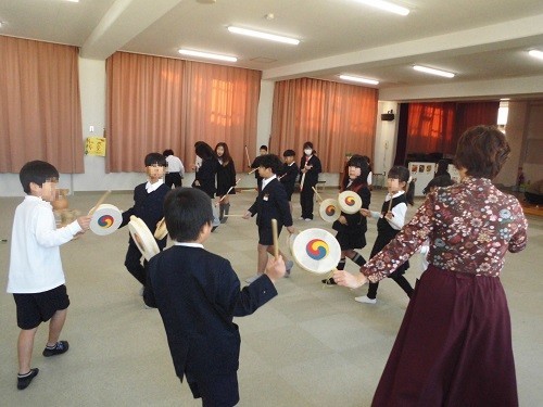 その後、韓国・朝鮮の伝統的な遊びである ソゴ(小さい太鼓)・ペンイ(こま)・チェギ・トゥホをしました。初めての体験だったのですが、みんな楽しく取り組んでいました。