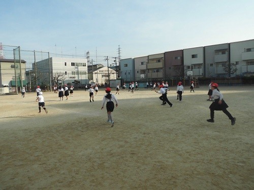 今日は、3・4年生の「鬼ごっこ集会」がありました。運動場せましと、みんなで走り回っていました。朝から走り回って、身体もホクホク、気分もスッキリです。