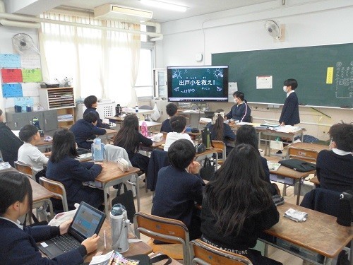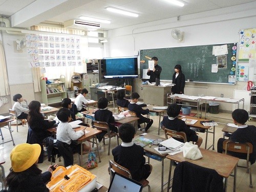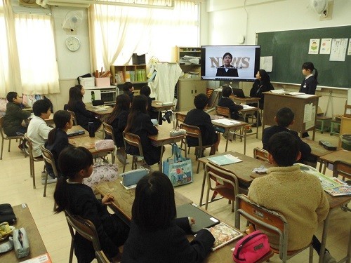 1月に行った手洗い強調週間の表彰をし、その後、健康委員会で作成した動画を観ました。けがの防止についての説明がありました。ニュース番組仕立てで楽しくわかりやすい内容になっていました。Canvaで編集したそうです。AI機能を使い、字幕やタイトルなど本格的に仕上がっていました。