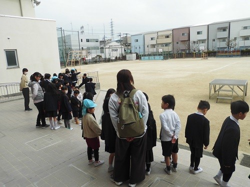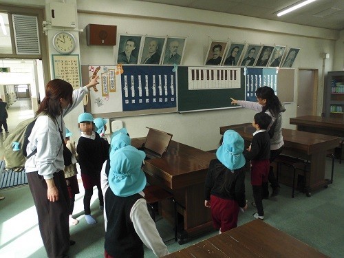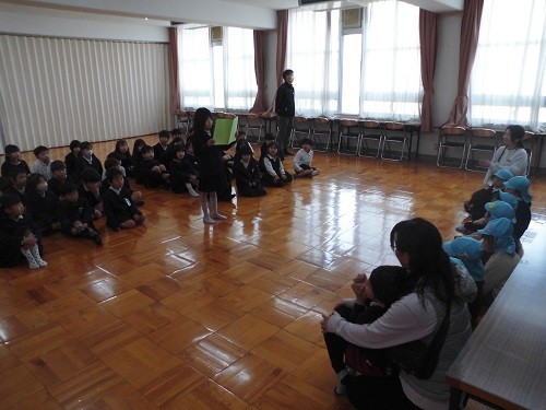 幼稚園の子ども達にとって、小学校への入学を迎えるにあたり、実際に校内を歩いたり、1年生と交流したりすることで、小学校での生活を身近に感じてもらおうという取り組みです。