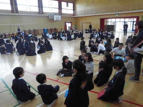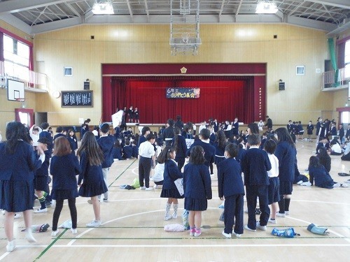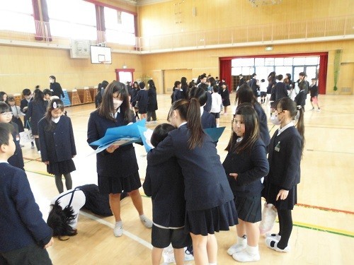 今日のふれあいタイムは、「ふれあい班お祝い集会」でした。在校生は、ふれあい班でお世話になった6年生に卒業のお祝いや感謝の気持ちを伝え、6年生は在校生に卒業への想いを伝えました。