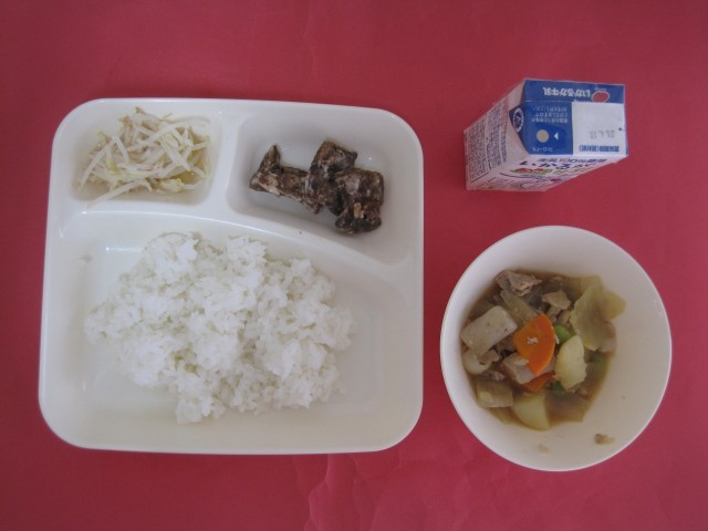 今日は、一年に1回登場するくじらのたつたあげです。冷凍のまま油で揚げました。1年生の児童の中には、初めて食べた児童が多く、「おいしい」とパクパク食べていました。