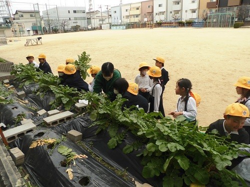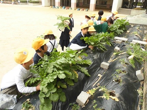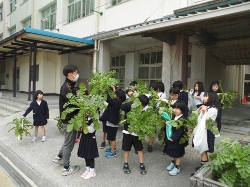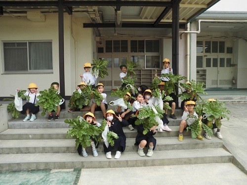 生活科の学習で育てていたダイコンの収穫をしました。