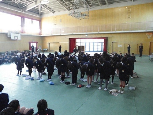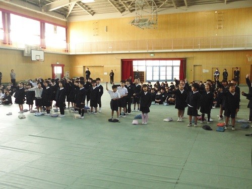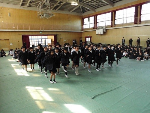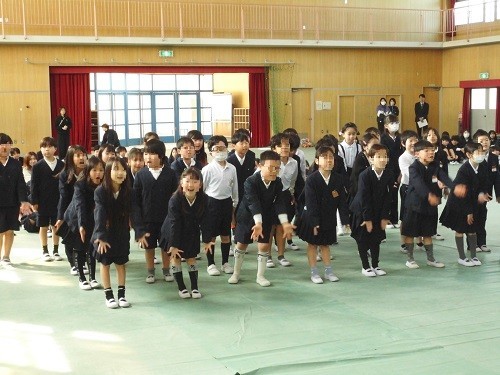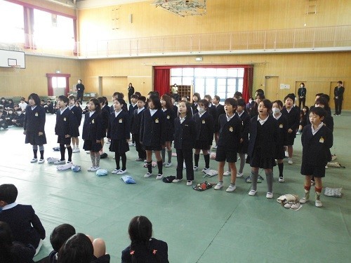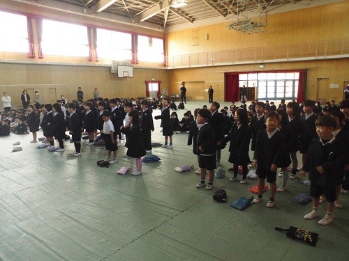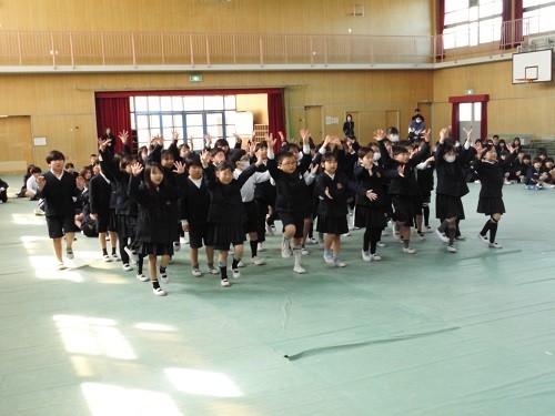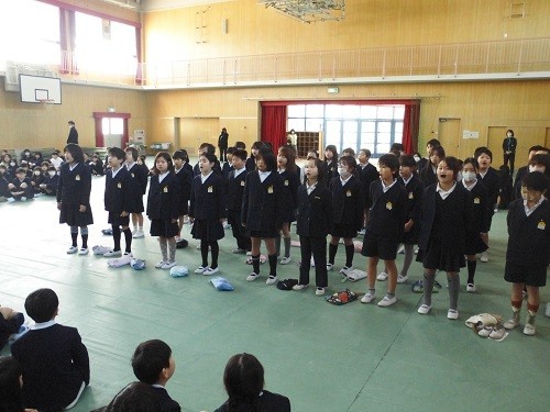 1年生が6年生の名前を呼び、お祝いの言葉を伝えました。どの学年も、お世話になった6年生に感謝の気持ちをこめ、歌ったり、合奏をしたり、呼びかけをしたりしていました。