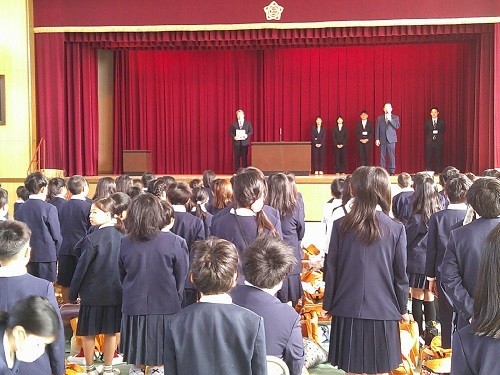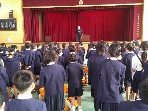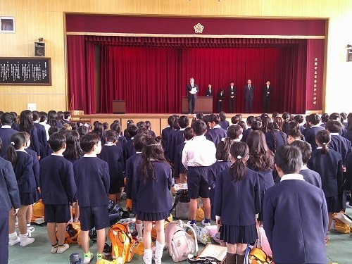 校長先生から長吉出戸小学校の「3つのめざす子ども像」についてお話がありました。「考えて行動する子」、「ちがいを認め合う子」、「命を大切にする子」、この目標に向けて頑張ってくれればと思います。
