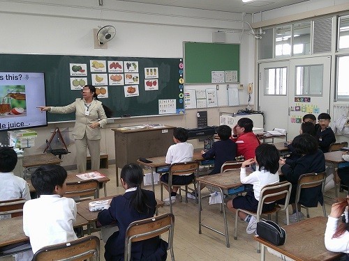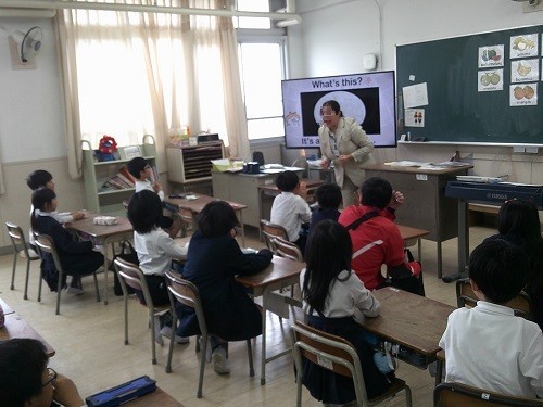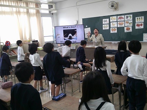 3年生から始まった外国語活動の時間です。C-NETのネイティブスピーカーの先生と一緒に学習をしました。クイズ形式で英語の表現を学びました。楽しくノリノリで学んでいました。