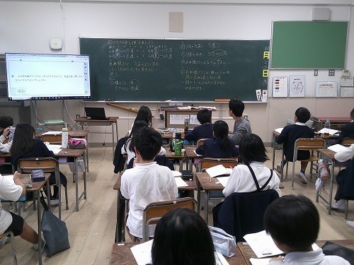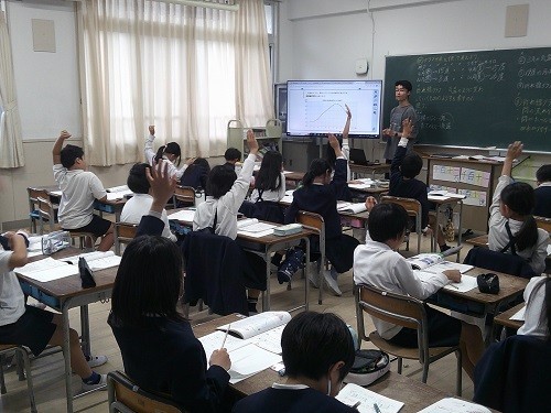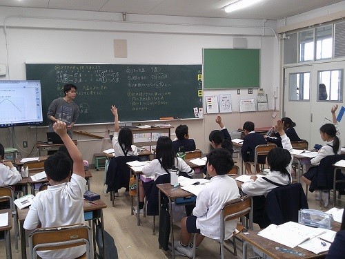 算数の「グラフや表を使って考えよう」の学習です。グラフの表し方、読み取り方を学習しています。グラフの変化をしっかり読み取っていました。