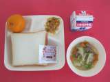 鶏肉、だいこん、キャベツ、にんじん、さんどまめ、コーンを使った洋風の煮ものです...