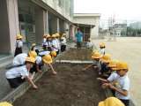 生活科の学習です。ヒマワリの種を植えました。 この前まいたアサガオの芽が出て...
