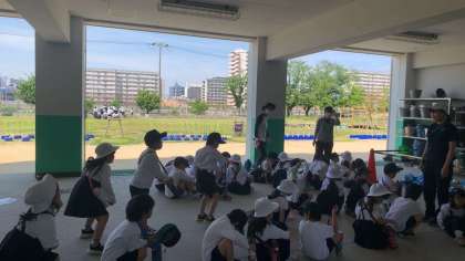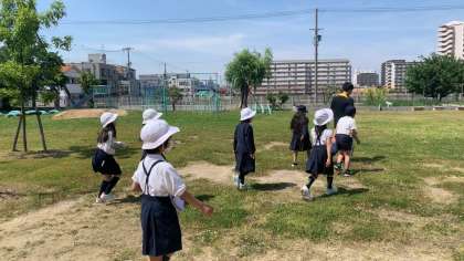 緑豊かなアトリパークは学習の場に大いに活かされています。植物を育てたり、生き物を探したり、広大なフィールドだからこそできることがたくさんあります。今日の5時間目は1年2年3年の3学年がそれぞれの学習で集まっていました。