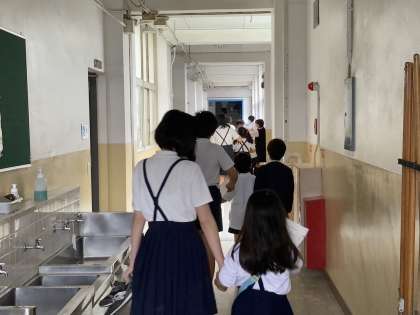 瓜西フェスタがスタートしました。開会式から移動の様子です。1年生の手を引く6年生の姿が良いですね。楽しみです。