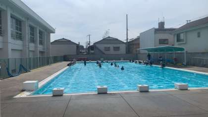 最高のプール開き日和です。子どもたちの楽しそうな声が聞こえてきます。