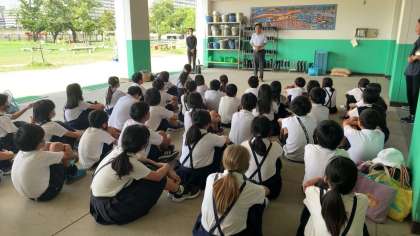 7月18日(火)スクールフォローアップ事業 公開日 2023/07/18 更新日 2023/07/18 お知らせ 日本教育公務員弘済会大阪支部主催スクールフォローアップ事業に、ビオトープの研究で申請を出したところ、見事選ばれ、ビオトープの造成に助成金を出してもらうことになりました。 今日はその贈呈式で、5年生児童が支援へのお礼を伝えました。 いいね(0)