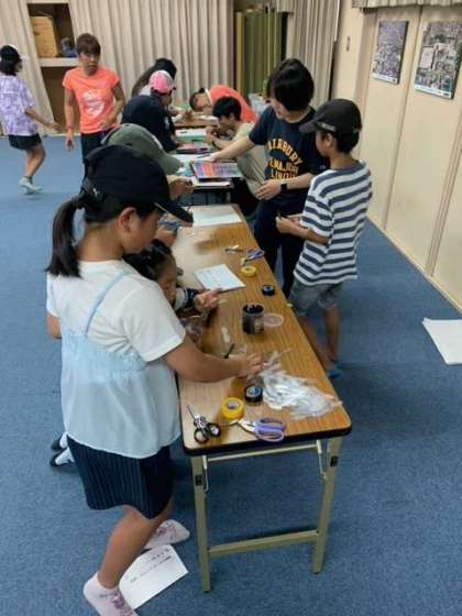 看板作り、葉っぱでの船づくり、オニヤンマストラップ作り、うちわづくり。