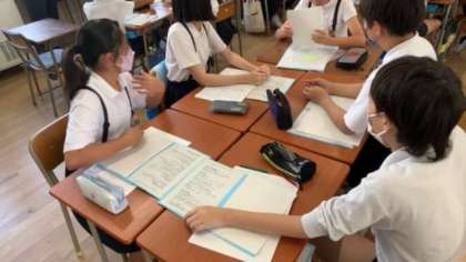 子どもたちは司会を決めて考えを交流していました。一人ひとりがよく取り組んでいました。