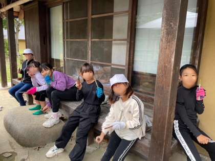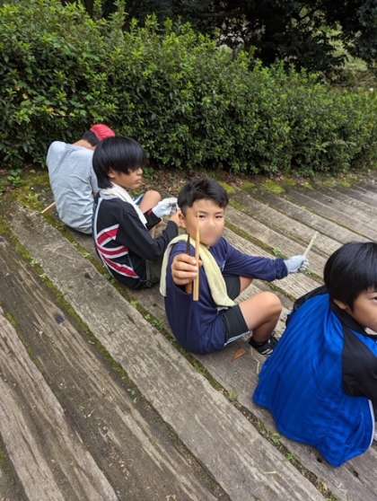 お弁当を食べて午後の活動です。竹箸づくりをしています。