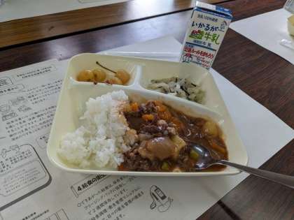 保健給食委員会活動報告です。10/6(金)給食試食会が行われました。☆メニュー☆は、ハヤシライス、キャベツのひじきドレッシング、さくらんぼ、牛乳でした。