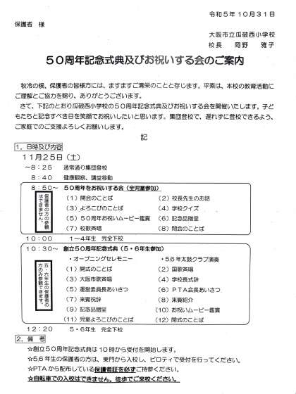 先日手紙を配付していますので、ご確認のうえご予定ください。