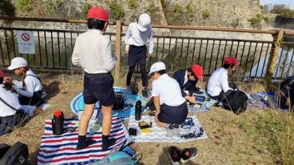歴史博物館をあとにして、大阪城公園で昼食です。気持ちのいい天気です。