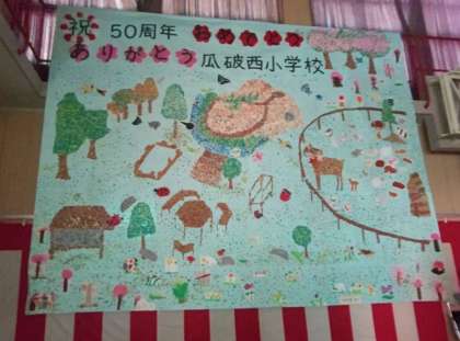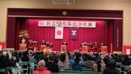 本日は創立50周年記念式典を行いました。アトリ(ヤギ)によるくす玉割りや、太鼓の演奏、50年を振り返るムービーなど、瓜西らしい式典となりました。