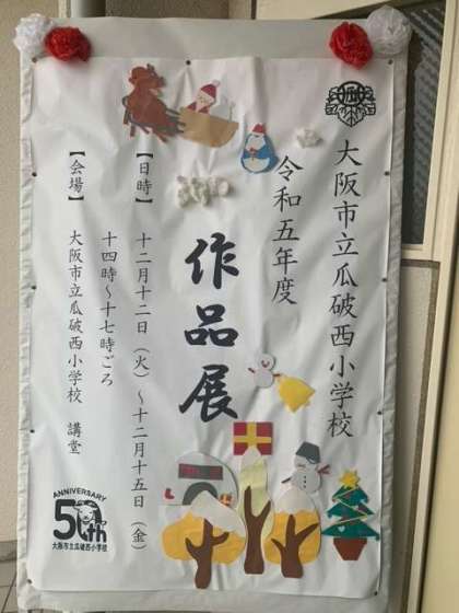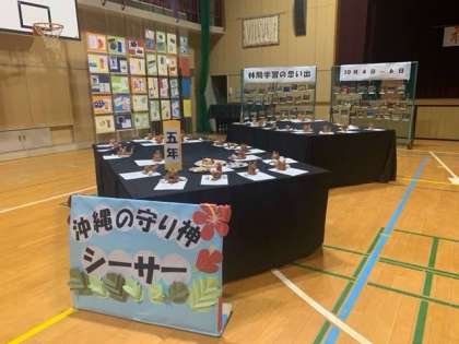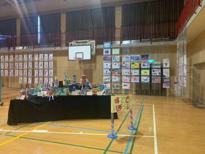 講堂で作品展を行っています。今年も子どもたちの個性あふれる素敵な作品が並び見応えありです。