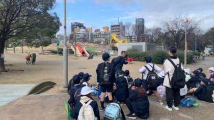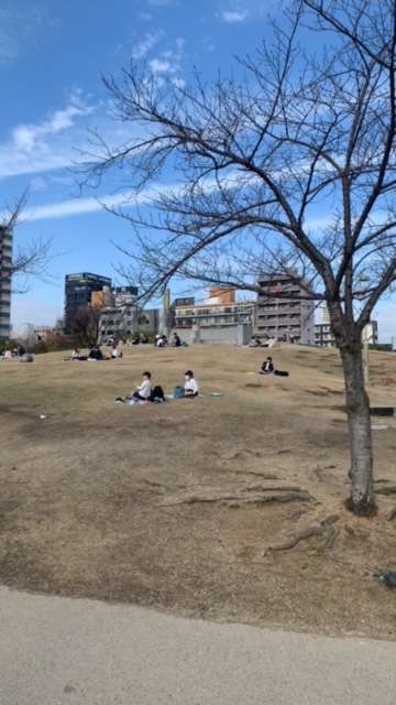 天神橋筋商店街と、くらしの今昔館を見学です。午後からの見学のため、まずは扇町公園で昼食です。ここから商店街を通って今昔館へ向かいます。