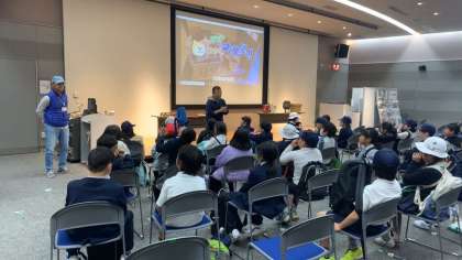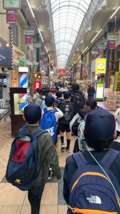 天神橋筋商店街を見学して今昔館へ。これから講義を受けて館内の見学です。