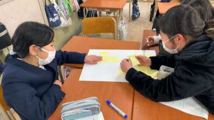 3月5日(火)5年生 総合的な学習の時間 公開日 2024/03/07 更新日 2024/03/07 お知らせ ビオトープ造成に取り組んできた5年生の学習のまとめをしています。活動を振り返りながら、全校児童や次を担う4年生たちに何を伝えていくのかグループでまとめています。 いいね(0)