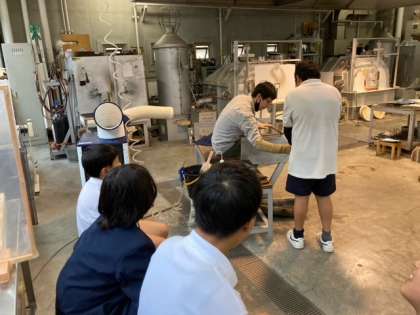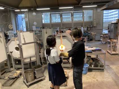 吹きガラス工芸です。暑い炉の前で夢中です。